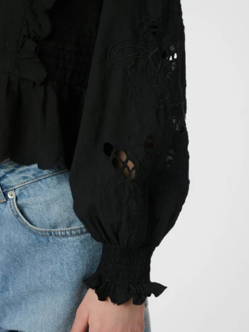 NEO NOIR PETRINE EMBROIDERY BLOUSE BLACK