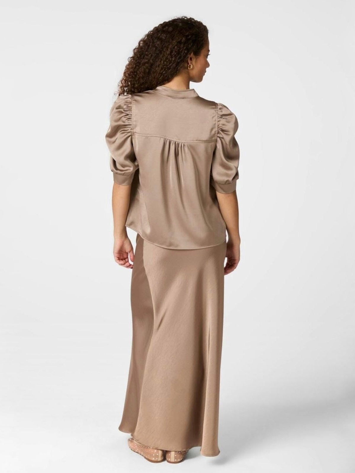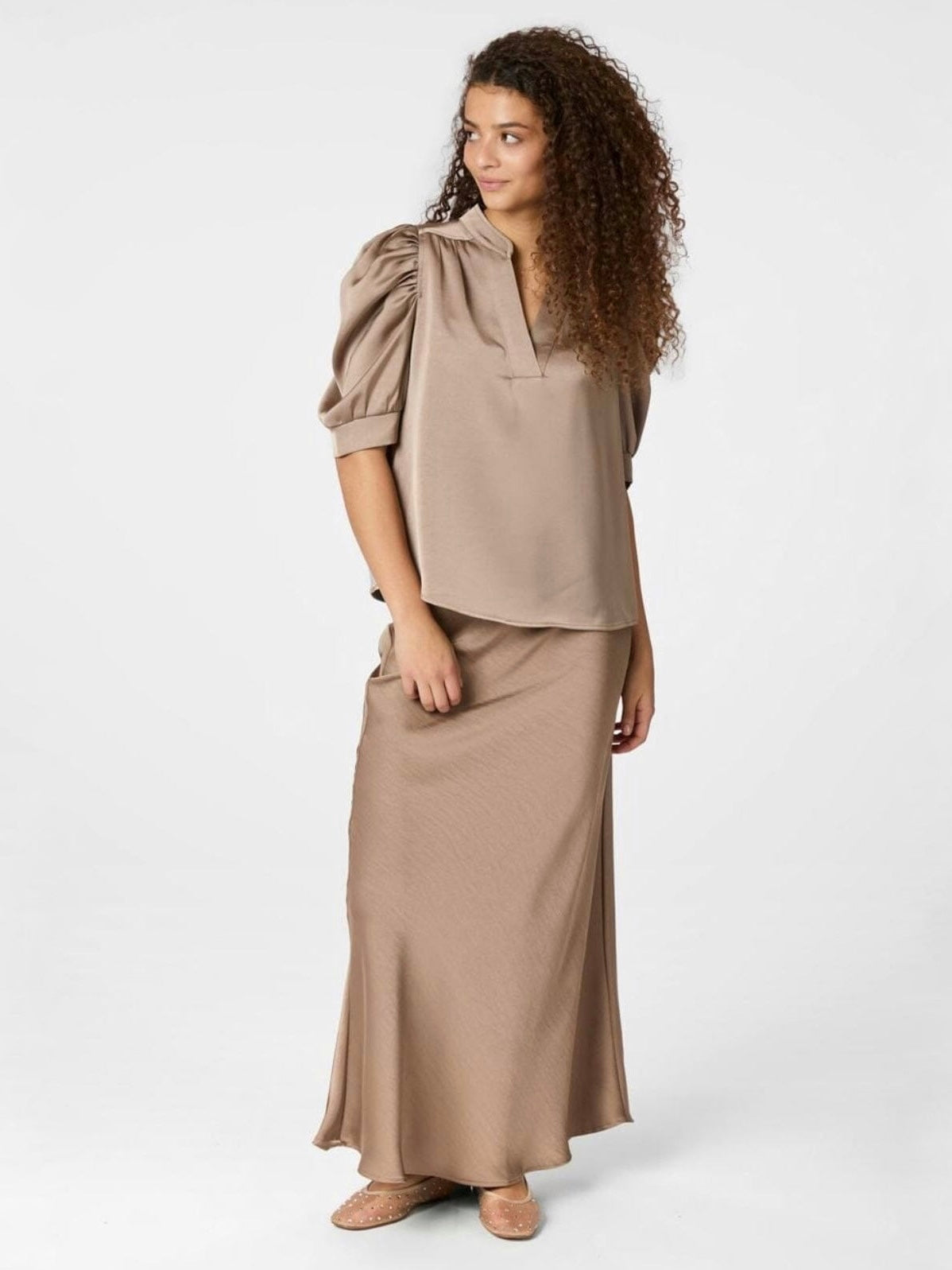 NEO NOIR ROELLA HEAVY SATEEN BLOUSE DARK TAUPE
