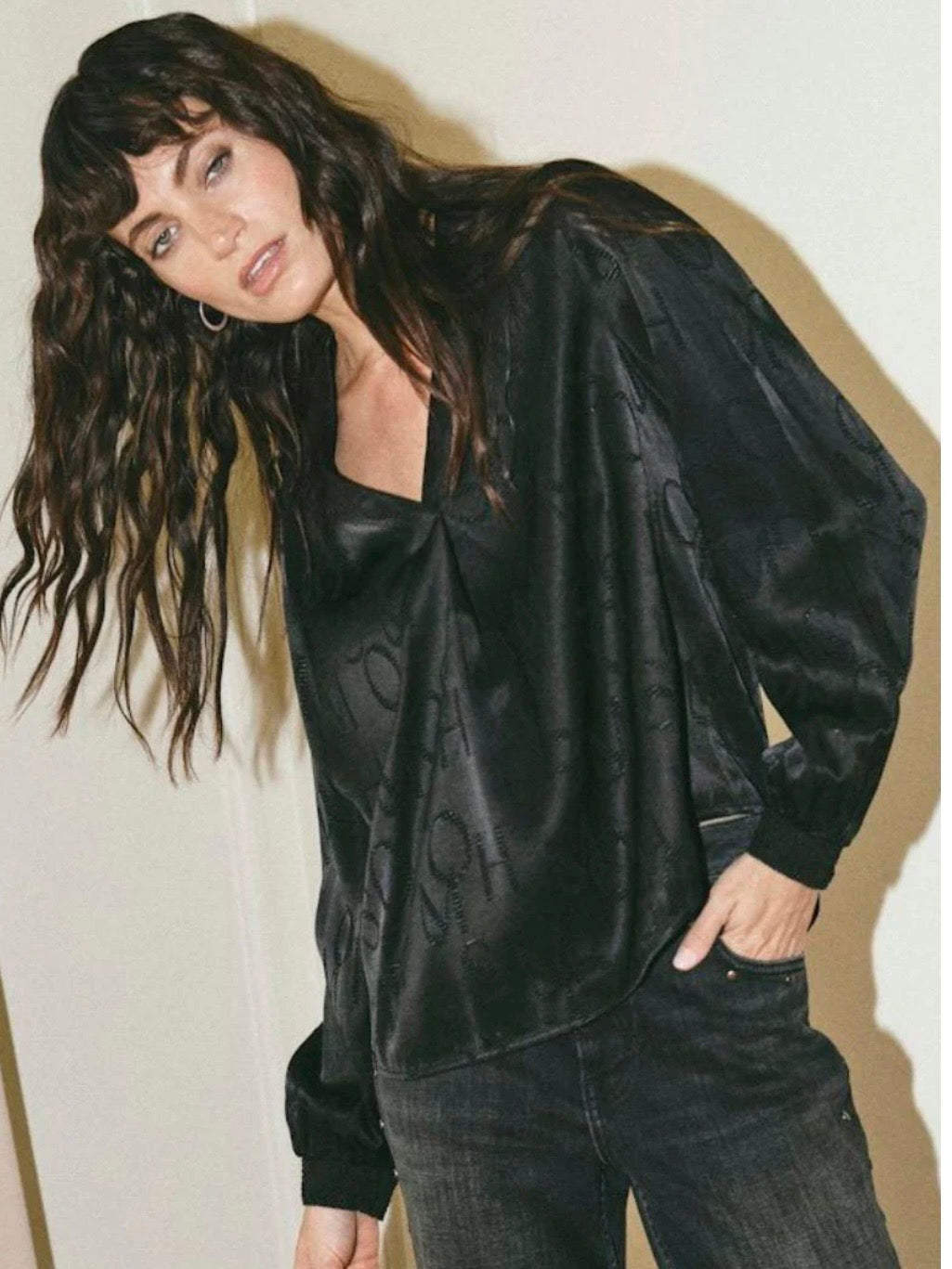 MOS MOSH ALDO MONOGRAM BLOUSE BLACK