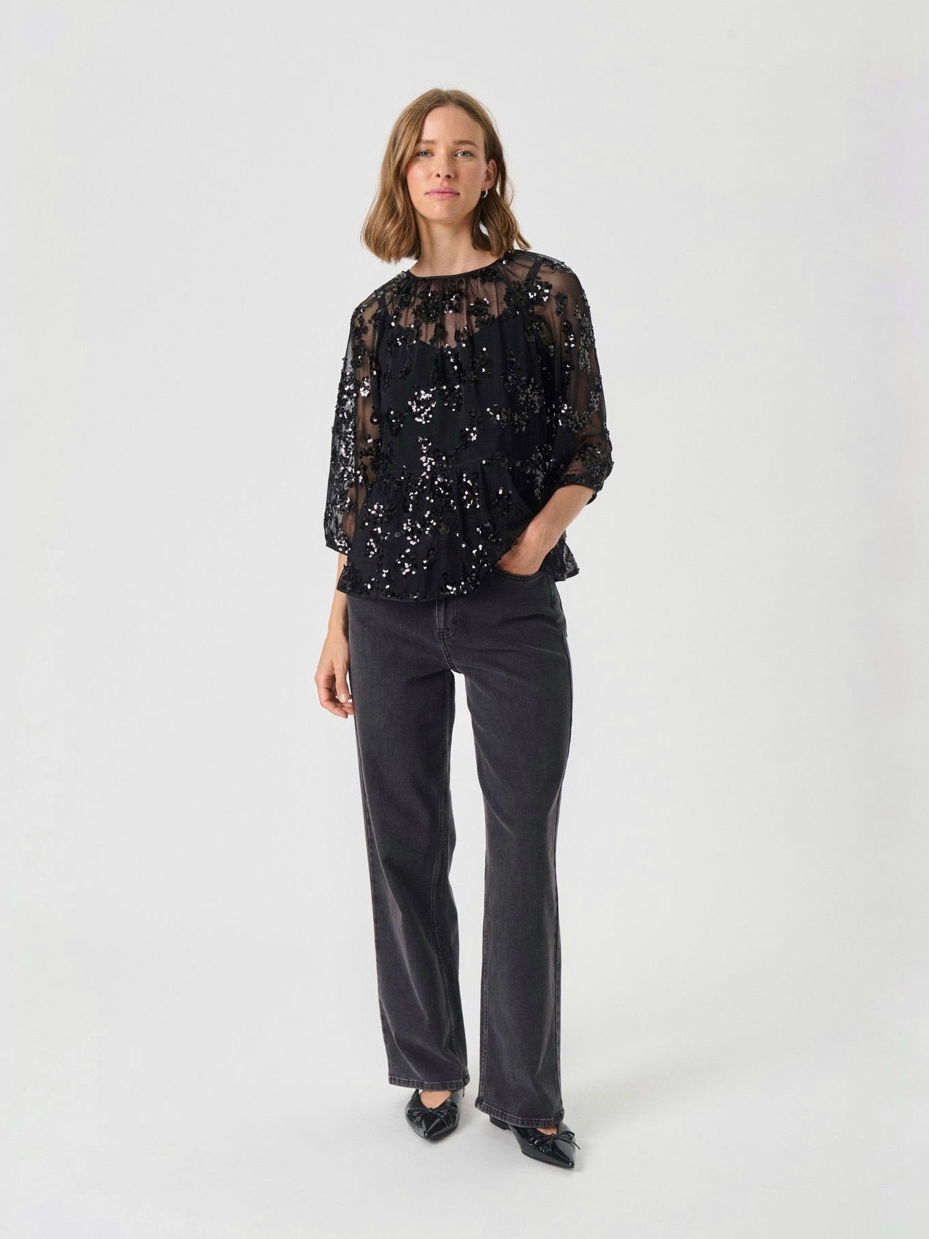 PART TWO VIVAN BLOUSE BLACK SEQUINS ON MESH