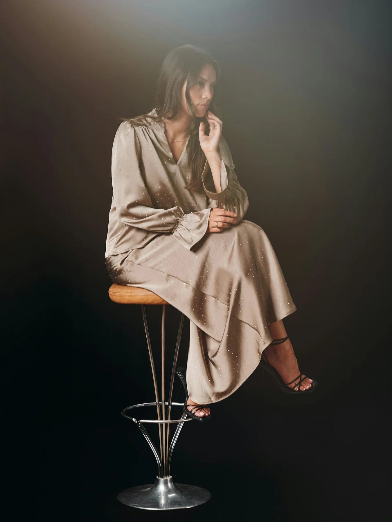 NEO NOIR AMARA HEAVY SATEEN BEDAZ BLOUSE DARK TAUPE