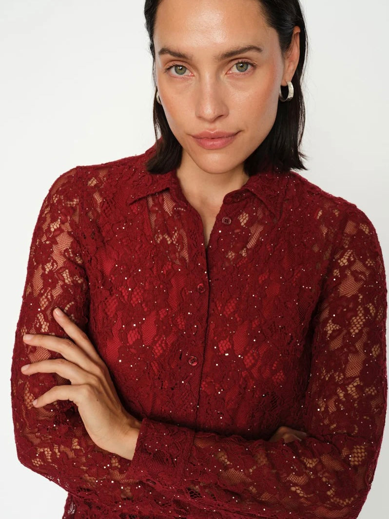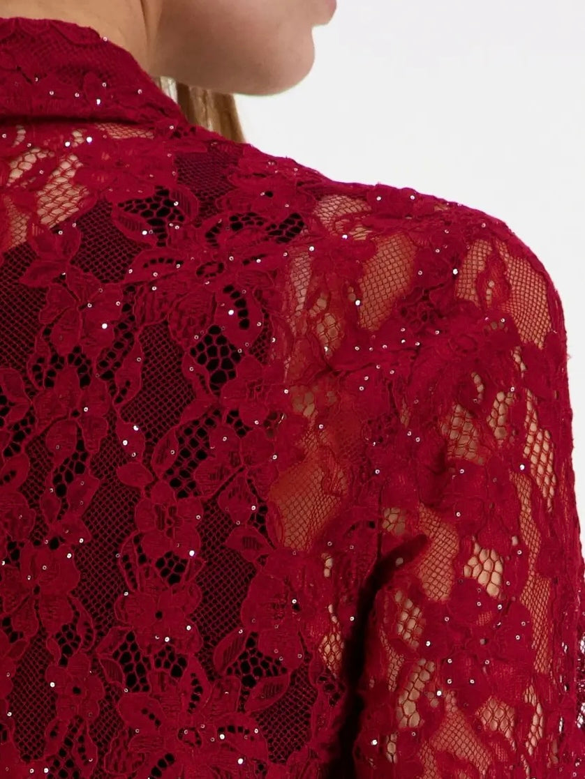 MOS MOSH KETHER LACE SEQUIN SHIRT BIKING RED