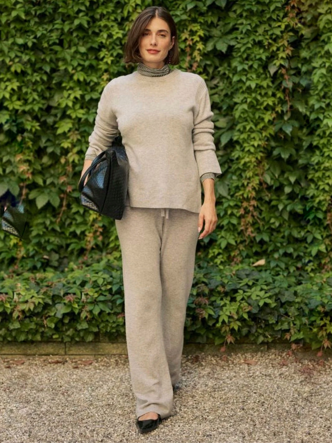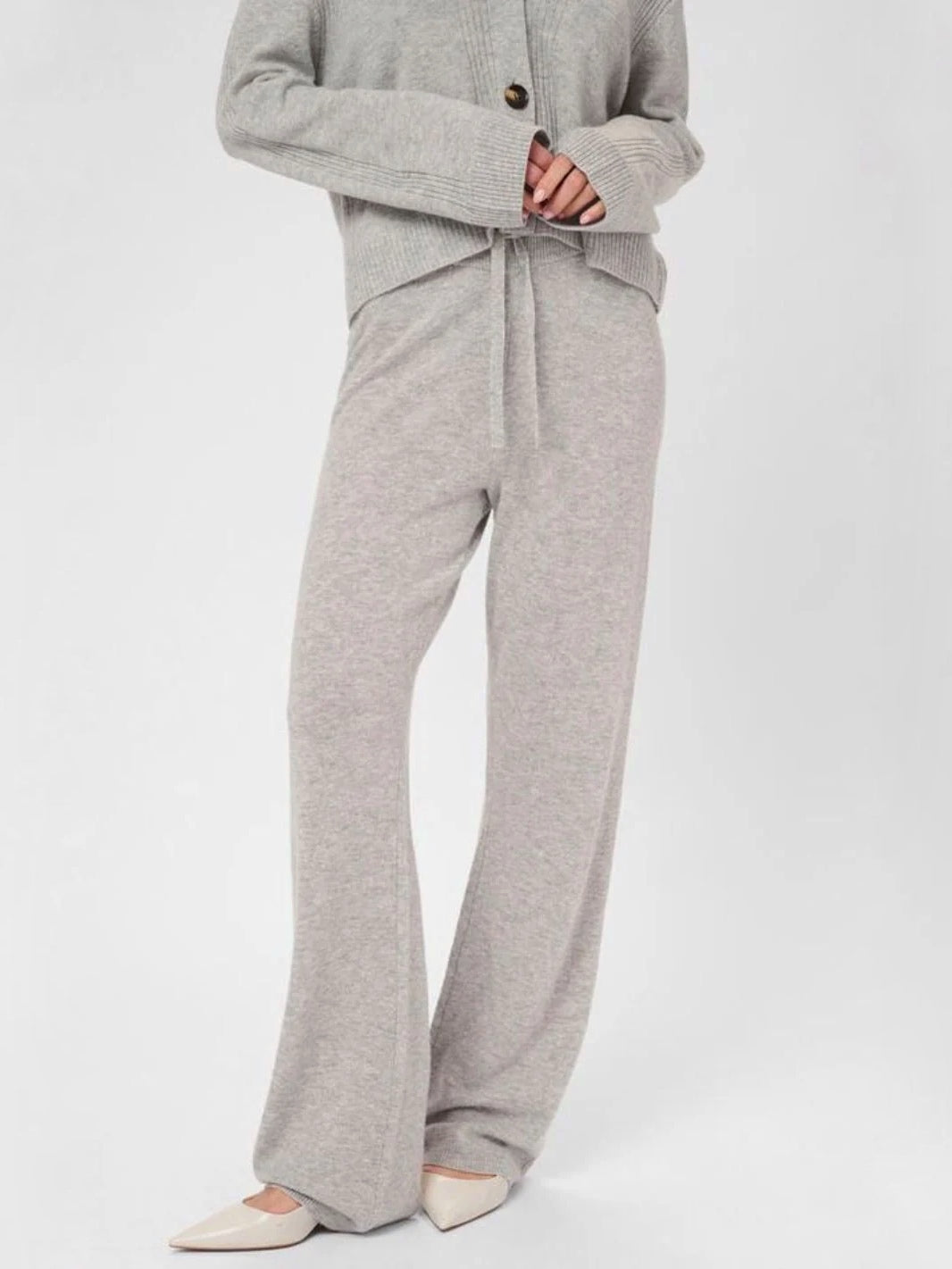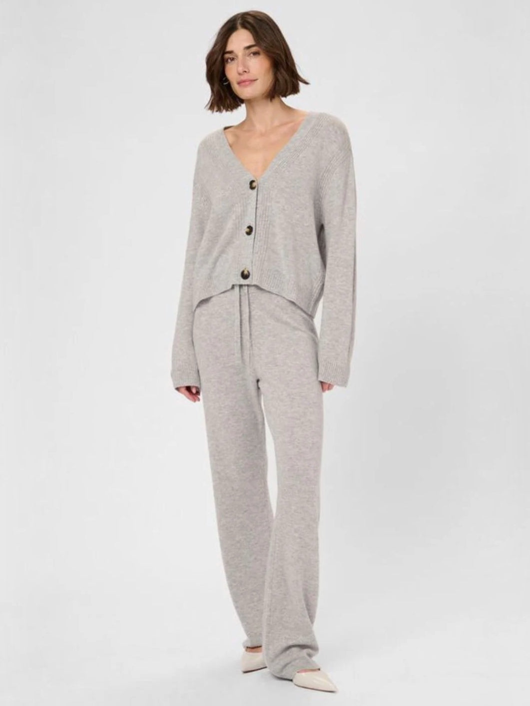 Culture Bianca Arrow Pants Grey Melange fra Culture. Behagelige og stilrene strikkebukser i en myk grå melange. Buksen har ribbede paneler langs bena som skaper et slankt og moderne uttrykk, samtidig som passformen er komfortabel med elastisk midje og rette ben. Et perfekt baseplagg til vintergarderoben, og ekstra fin sammen med Bianca Arrow Pullover for et komplett sett.
