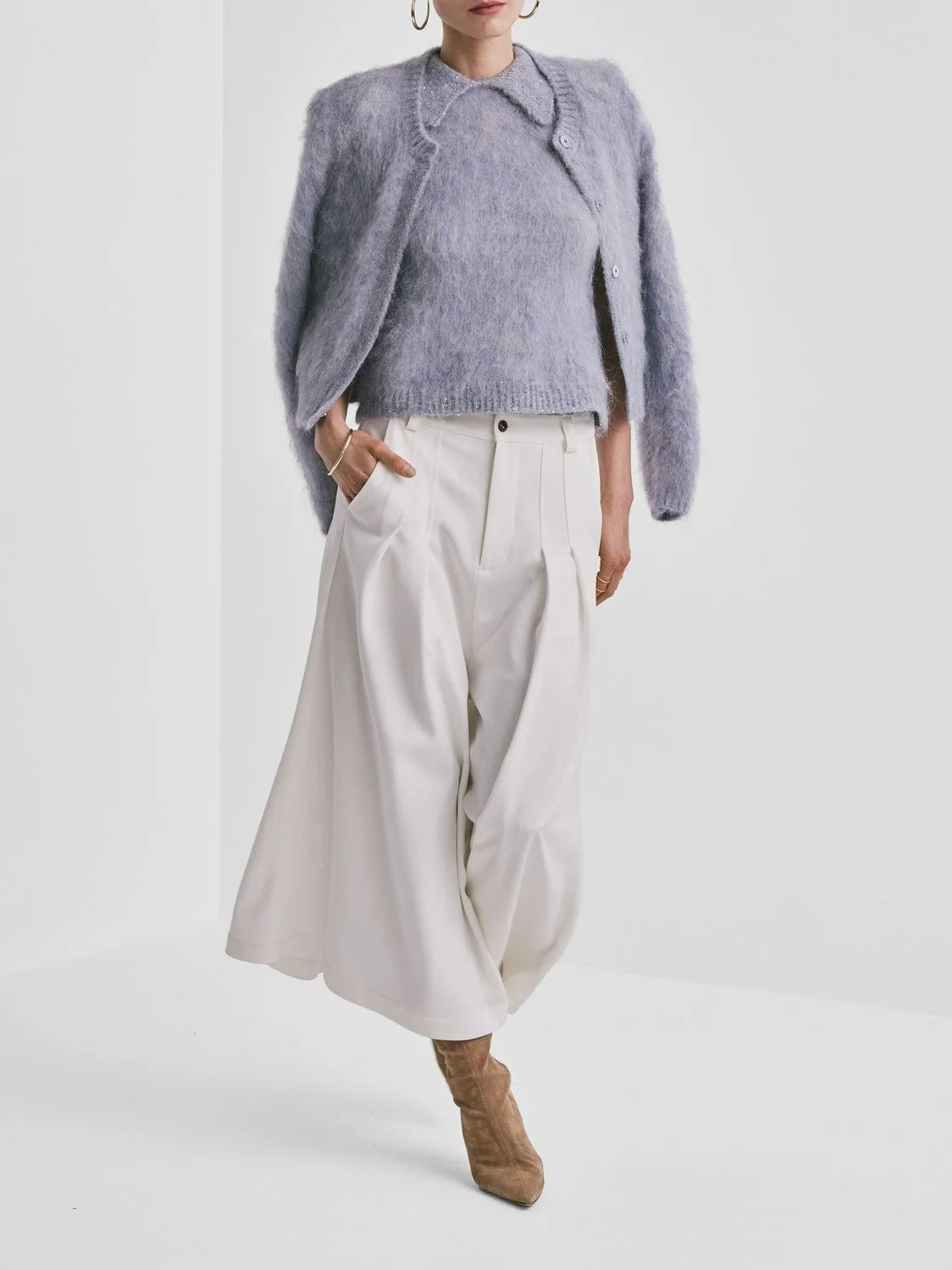 BYTIMO HAIRY KNIT JACKET SKY BLUE
