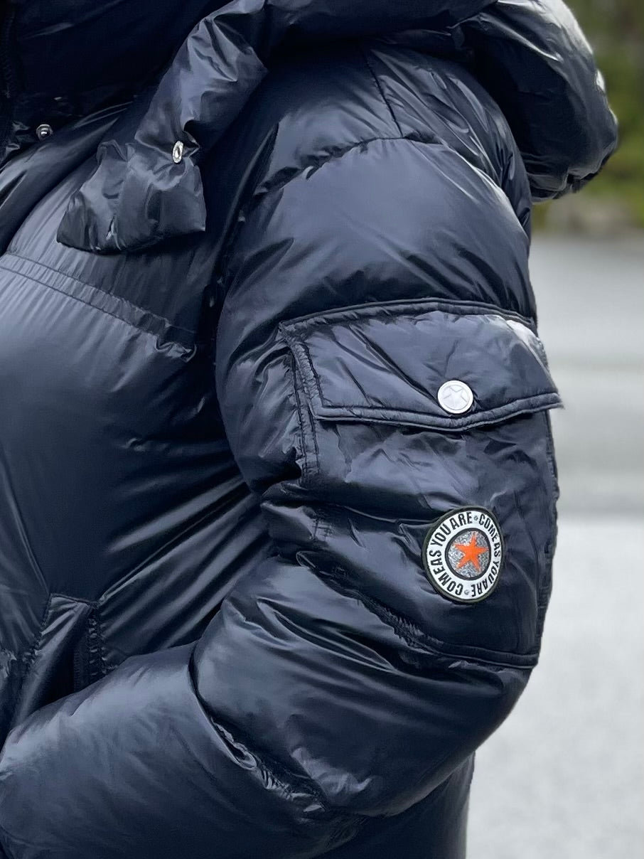 Lomme på ermet med logo og frontlommer som lukkes med glidelås. Jakken er fylt med 90/10 dun og fjær som holder deg varm på kalde dager.