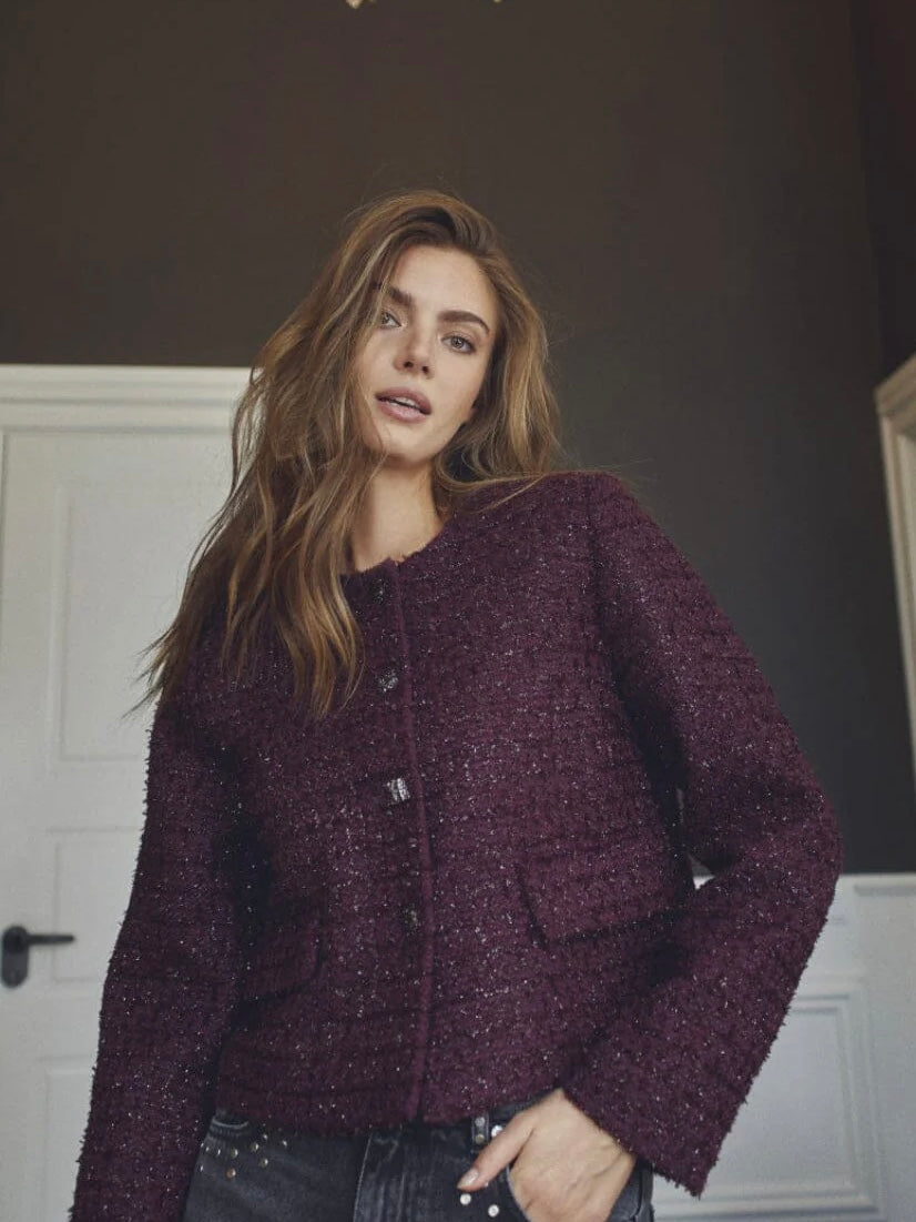 Peach Boucle Jacket fra Co´Couture er en skikkelig lekker tweedjakke i en delikat plommefarge.