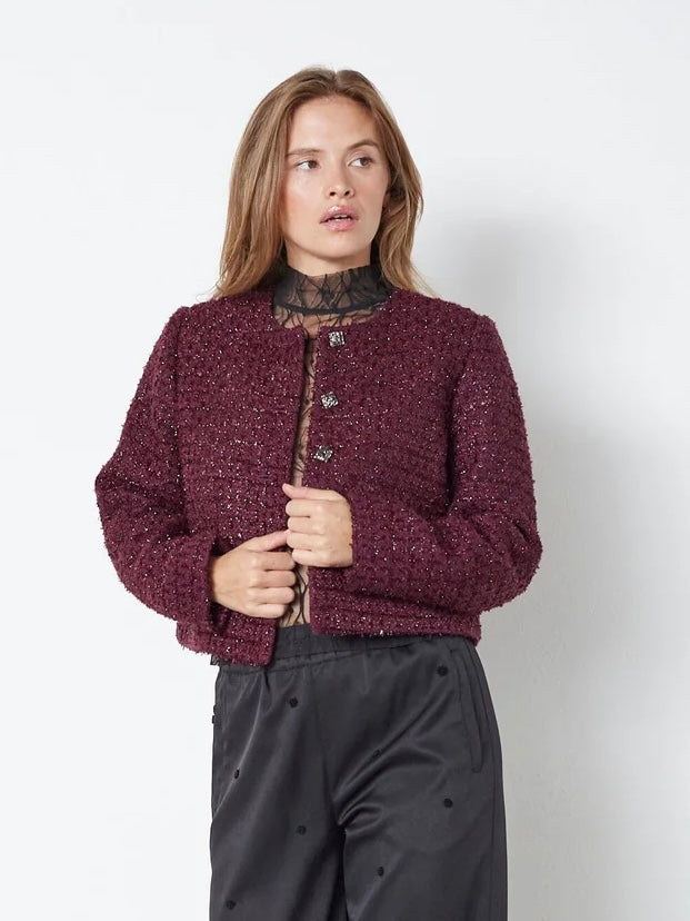 CO’COUTURE PEACH BOUCLE JACKET PLUM