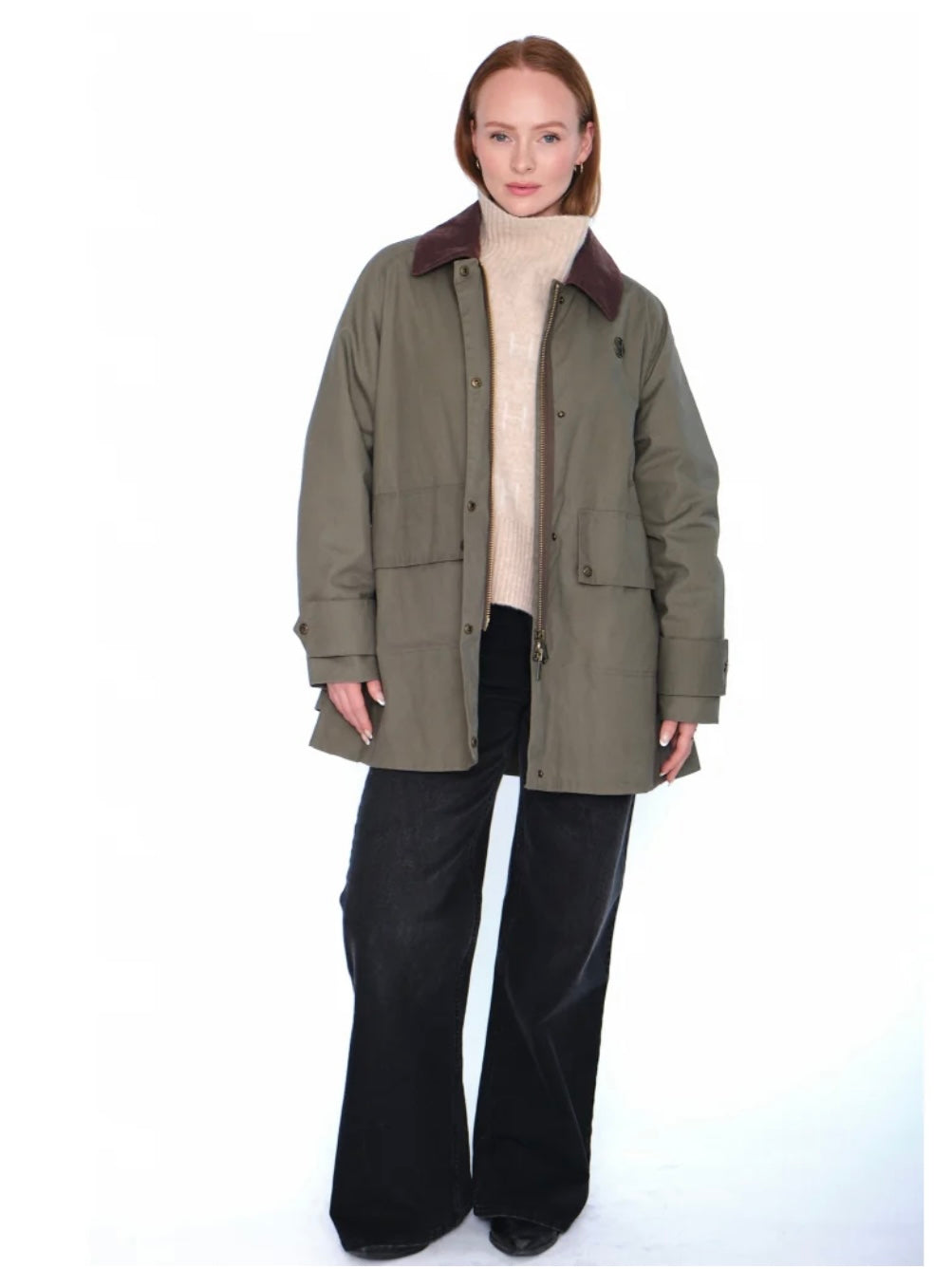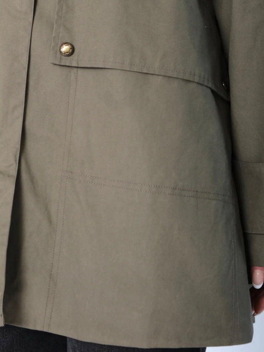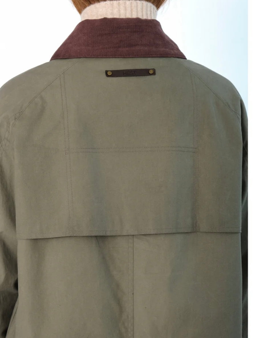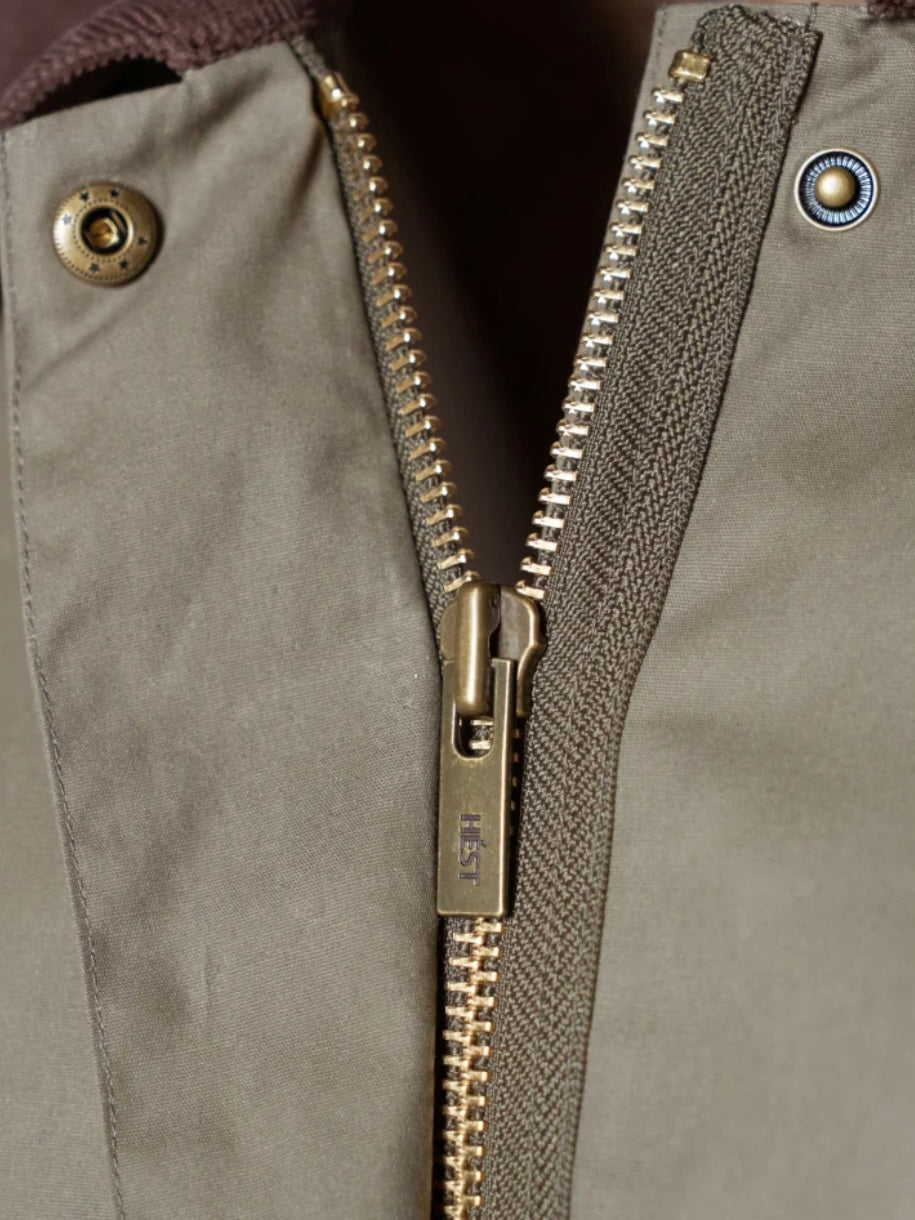 Denne stilige ytterjakken i grønn farge kombinerer funksjonalitet med et moderne design. Den har en brun kontrastfarge på kragen som gir et sofistikert preg. Jakken har justerbare mansjetter, lommer foran, god lengde og synlig H-logo foran. Lukkes med glidelås foran.