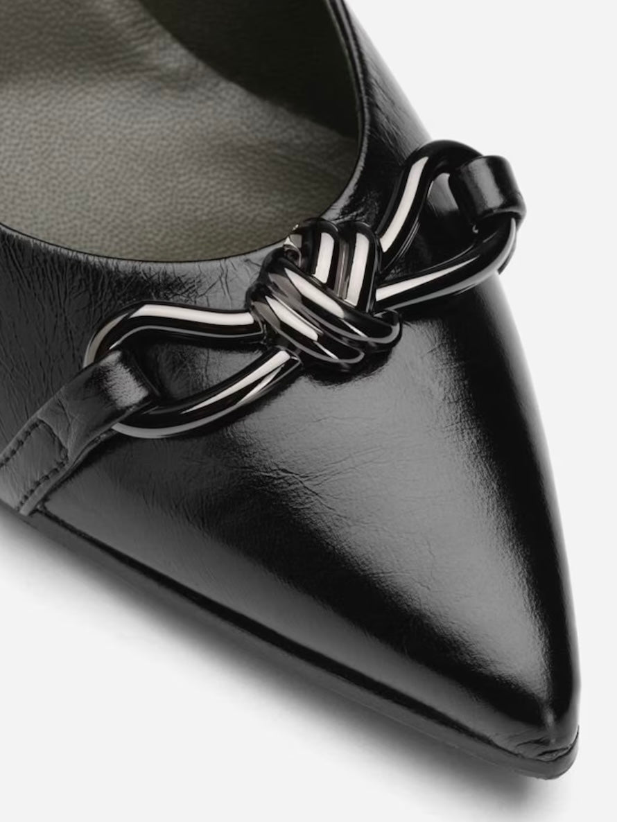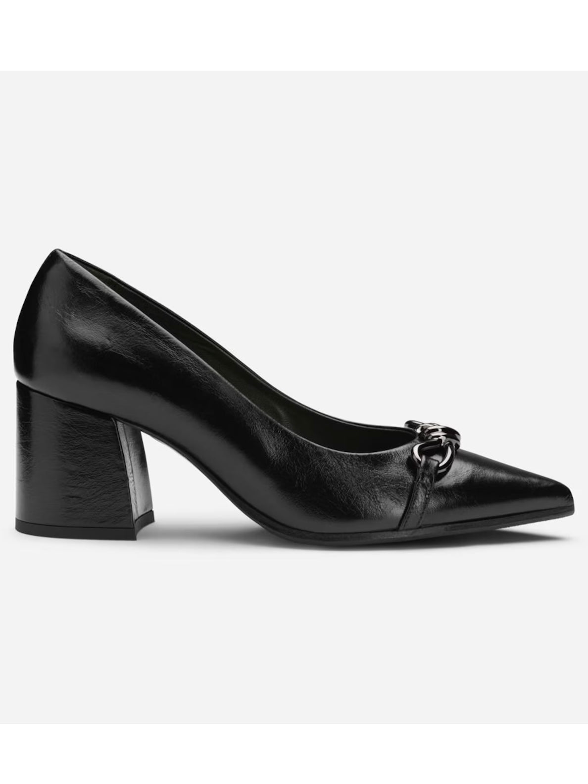 Skikkelig lekre pumps fra Laura Bellariva , disse er et tidløst tilskudd til enhver moderne garderobe. Utført i glatt, svart skinn av høy kvalitet, kombinerer de klassisk design med raffinerte detaljer og suveren komfort. Den spisse tåen gir skoen et sofistikert uttrykk, mens den solide blokkhælen gir god støtte og stabilitet – perfekt for deg som ønsker å se stilfull ut gjennom en hel arbeidsdag eller en kveld ute.