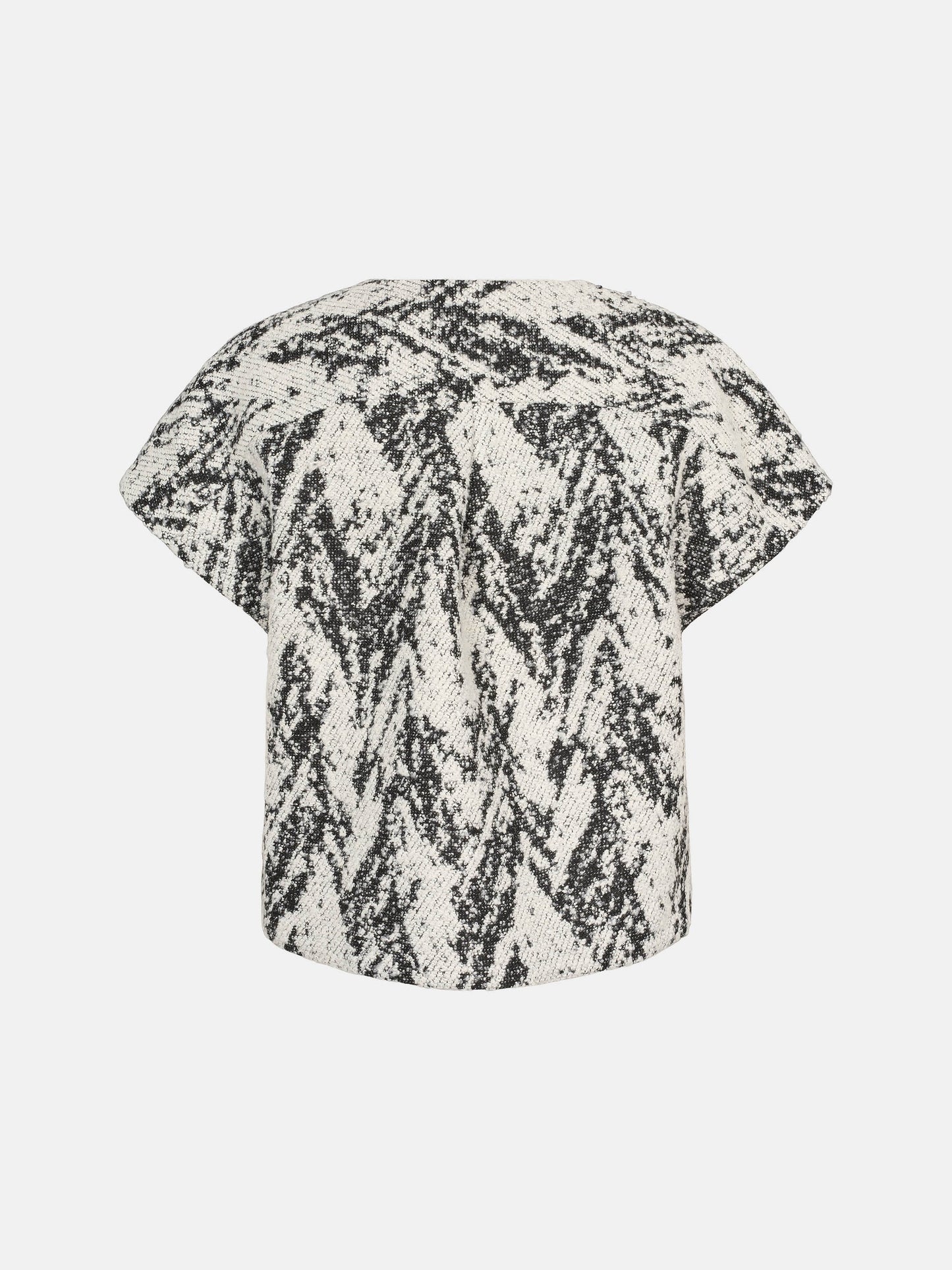 RDF New Hika Vest Offwhite/Black fra Rue de Femme. En moderne og stilig vest med droppede skuldre og rund hals som gir et rent og trendy uttrykk. Den melerte, quiltede strukturen i offwhite og sort gir et eksklusivt og grafisk preg, mens de skjulte knappene i front holder looken elegant og enkel å style. Perfekt over skjorter, bluser eller t-skjorter – like fin til både dressbukser og jeans.
