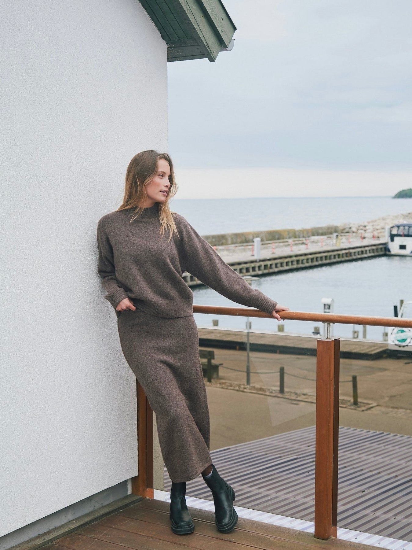 Paulina Knit Blouse fra Neo Noir er en superfin genser i vakker brunfarge. Paulina Knit Blouse har semihøy hals, lange ermer og en avslappet passform. Den er laget i myk og behagelig ullmix. Bruk den til jeans, dressbukser eller skjørt.