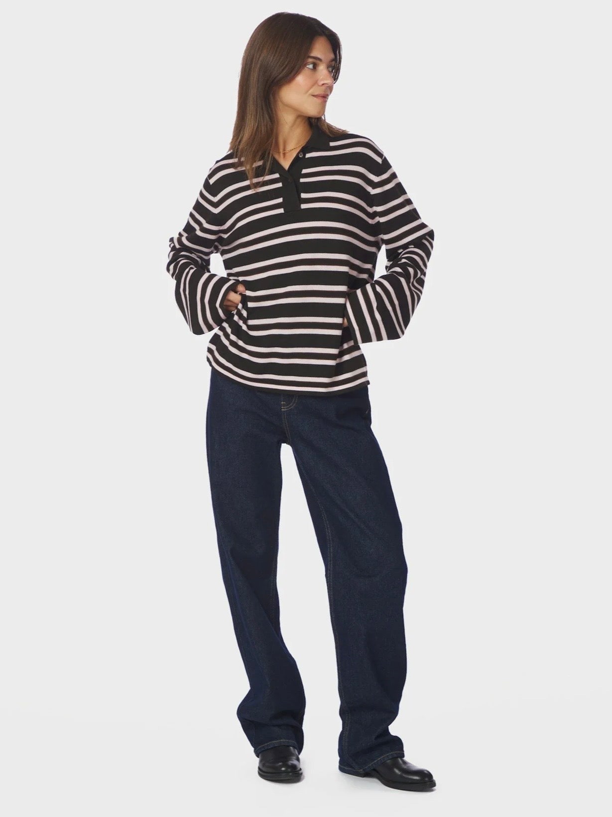 Mala Polo Knit Blouse fra Neo Noir er en myk, deilig og tidløs genser med klassiske striper. Den er laget i en myk og lett strikk som gir en behagelig følelse mot huden.