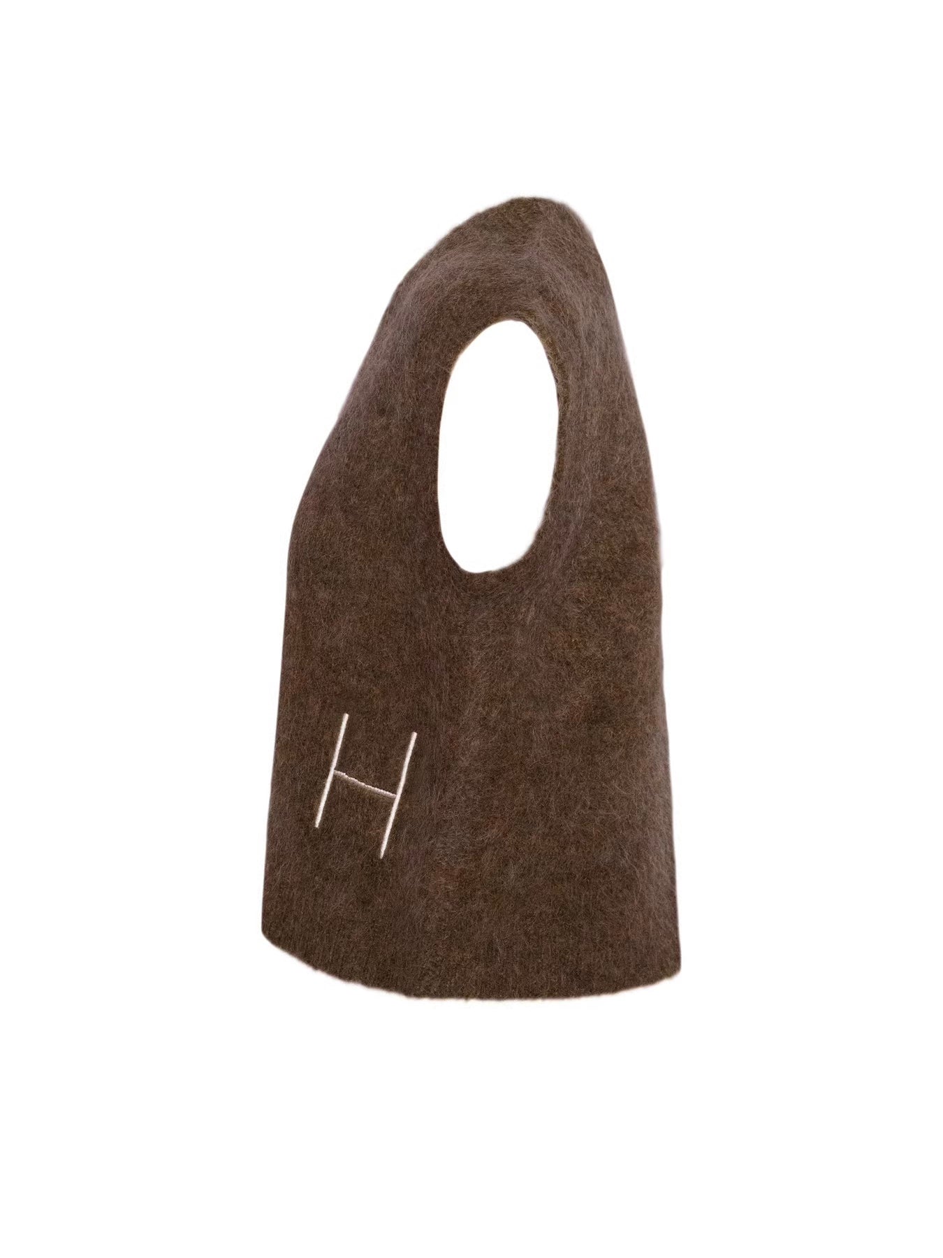 Pernille Vest Dark Earth fra Hést. Denne avslappede vesten med V-hals er laget i en myk alpakka-blanding for en lun og behagelig følelse. Ribbestruktur og rå kanter gir et moderne og teksturert uttrykk. Et stilrent lag-på-lag-plagg som tilfører antrekket en oppdatert edge.