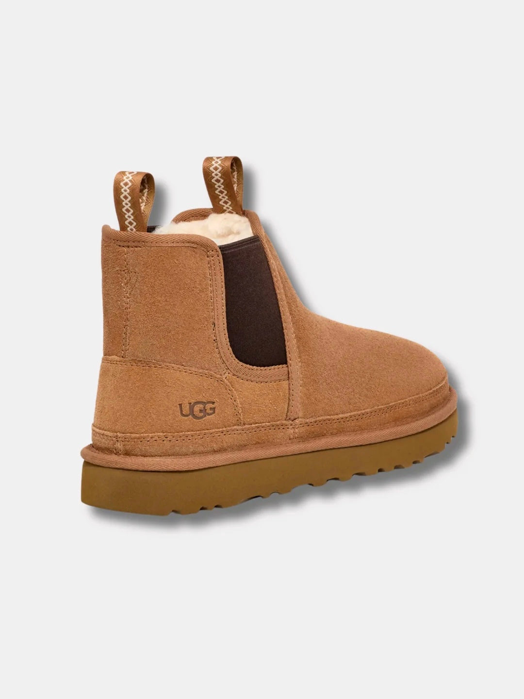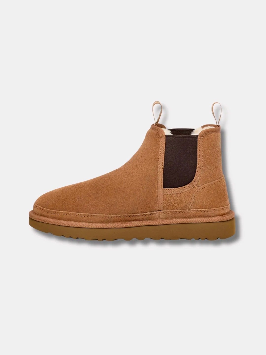 Neumel Chelsea fra UGG. En chukka -silhuett med twin gore for enkel inngang og en raffinert finish, og kombinerer førsteklasses materialer og uanstrengt stil. Den er laget av rik semsket skinn, og er foret i vår UGGplush -ullblanding og ferdig med en slitesterk Treadlite by UGG -såle som gir lett komfort og en fleksibel følelse uansett hvor du går.