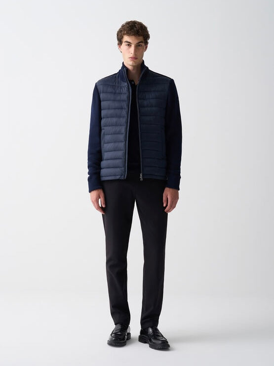 Den har vattert nylon med varm, ullblandet strikk på ermene og myk, bomullsblandet fleece på ryggen. Denne flotte jakken er både ungdommelig og moderne, og passer perfekt til jeans eller mer formelle bukser.
