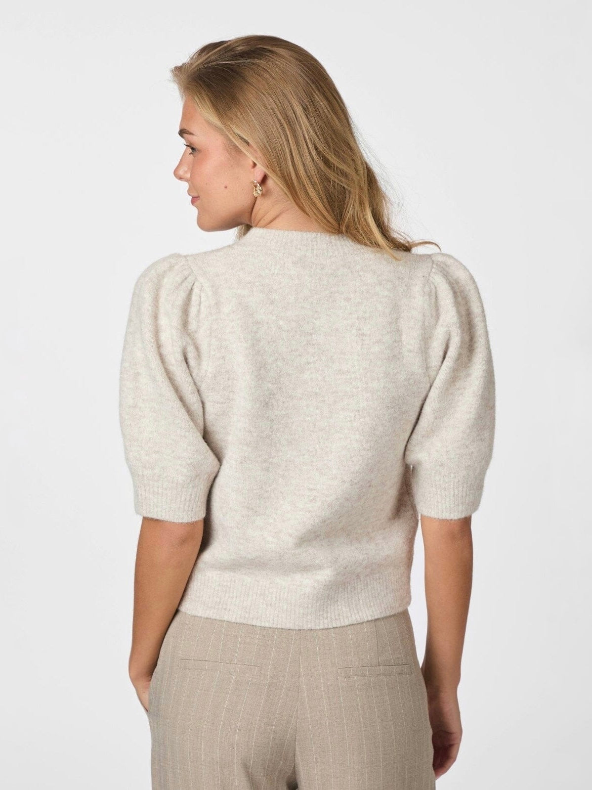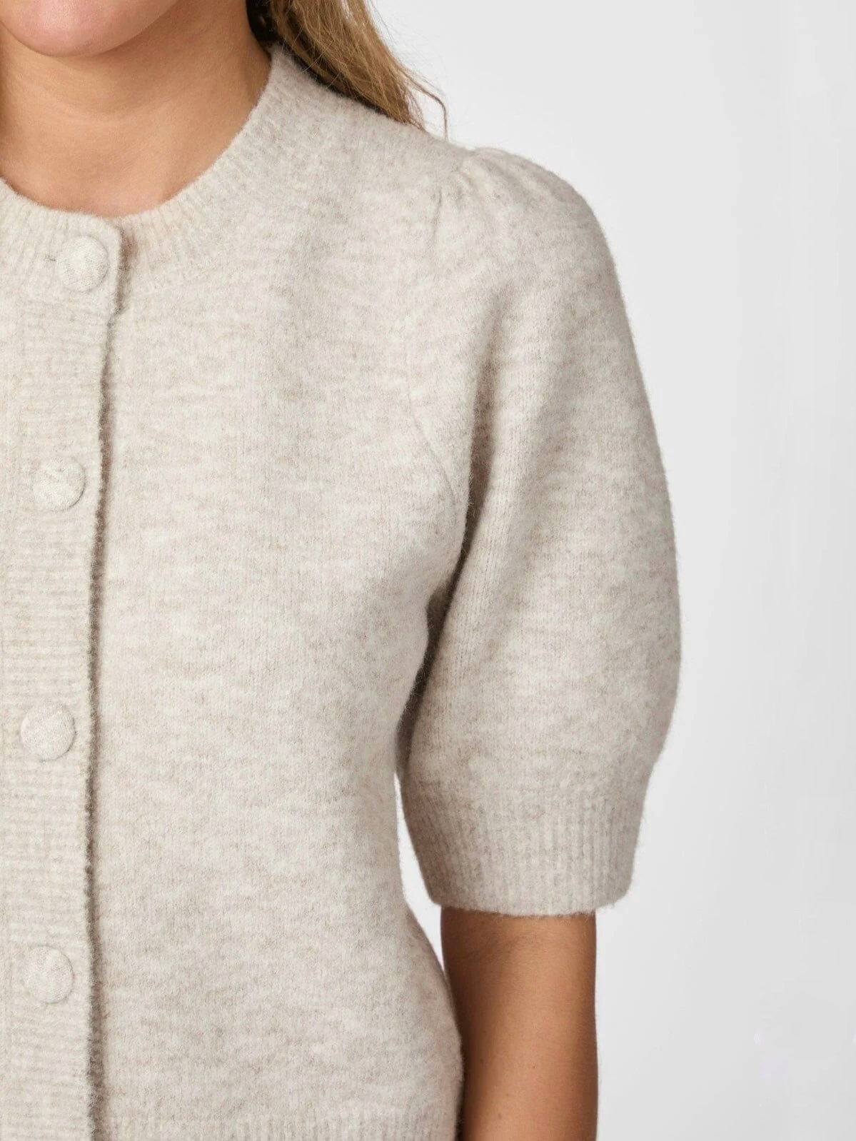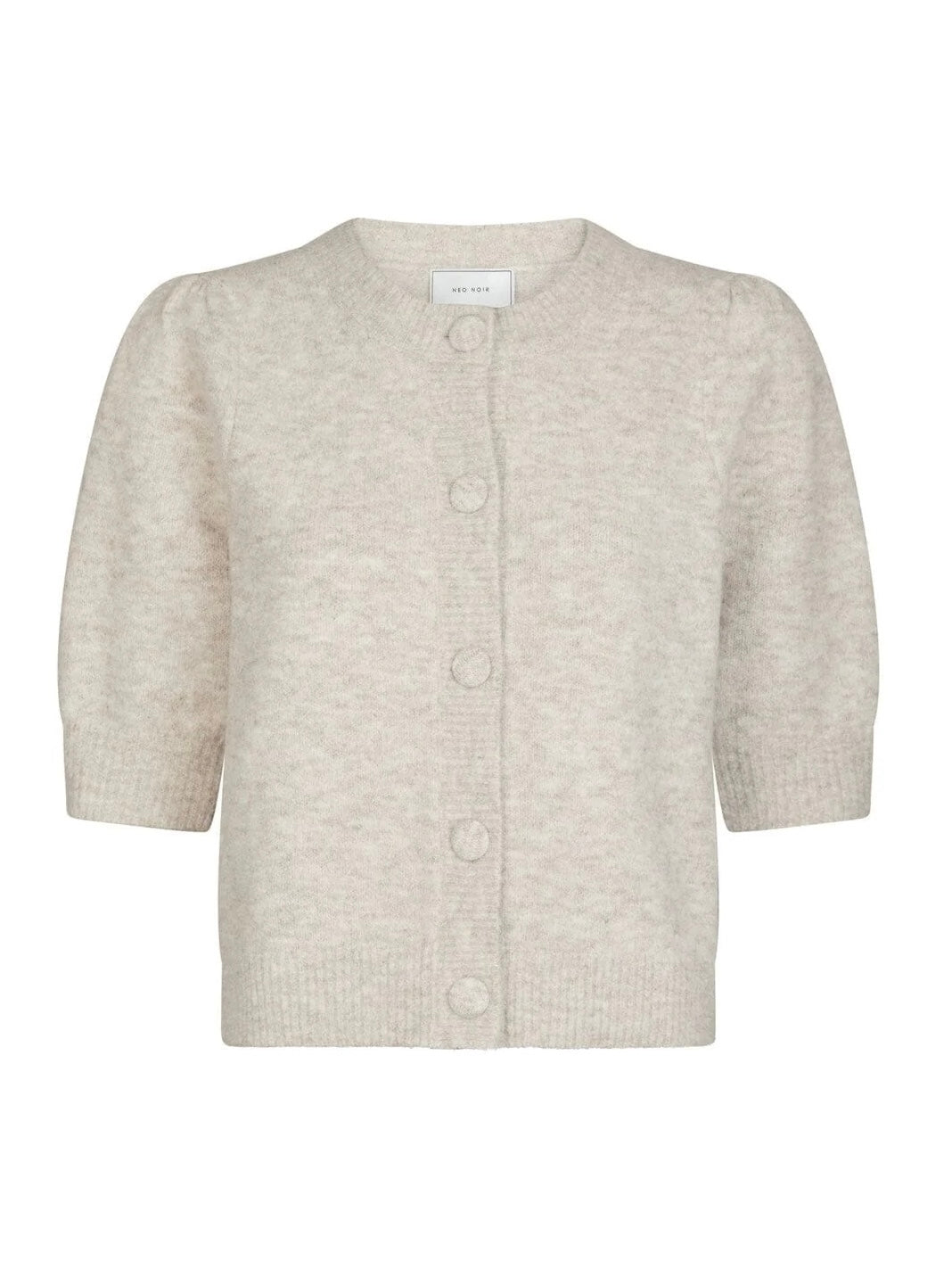 Trudy Knit Cardigan fra Neo Noir. Søt, feminin cardigan fra Neo Noir. Trudy Knit Cardigan har korte puffermer med ribbet mansjett. Cardiganen har rund hals, knappelukking og innsvingt og feminin passform.