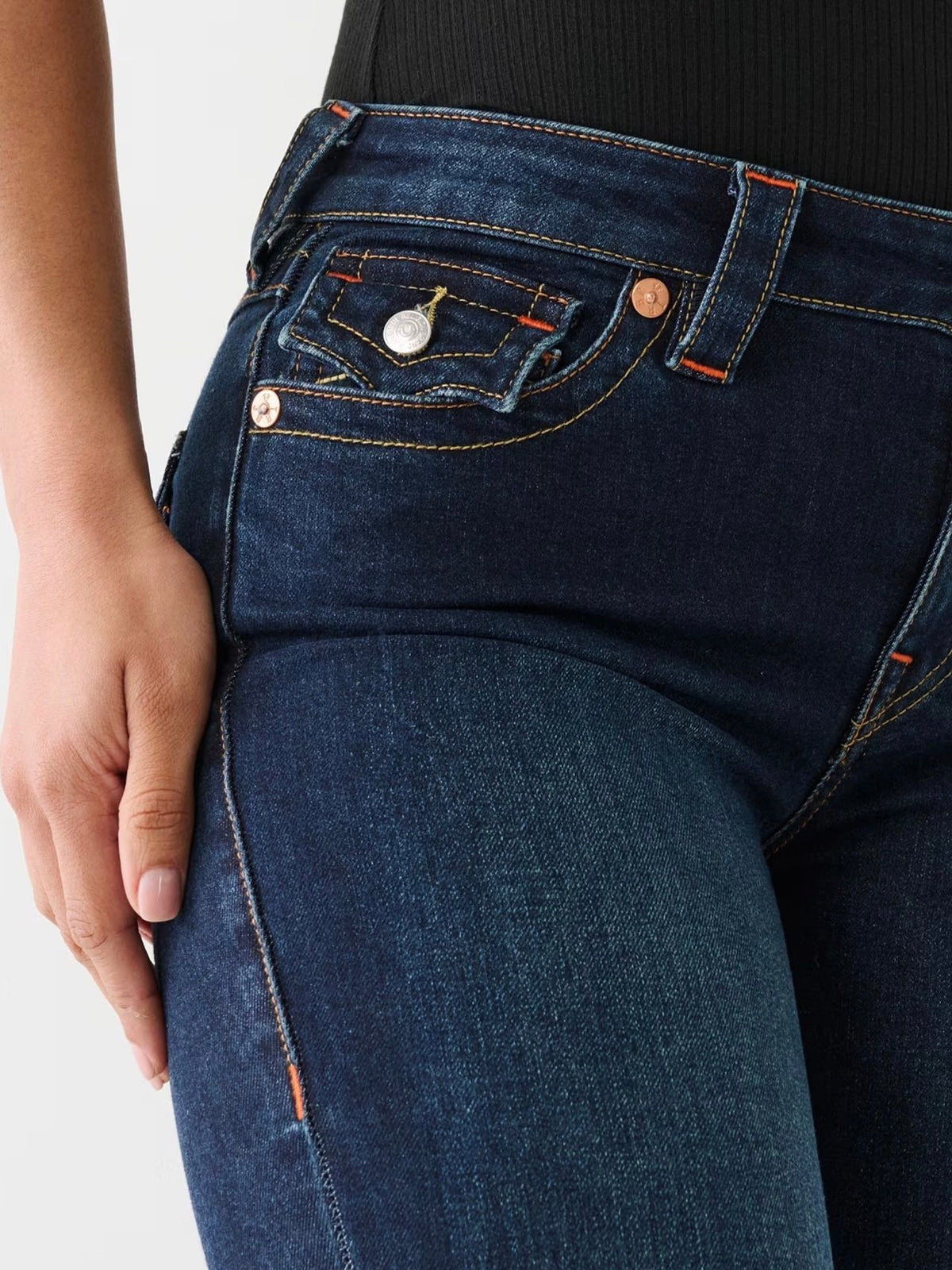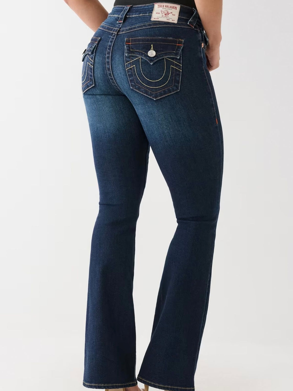 TRUE RELIGION BECCA MID RISE BOOT CUT FLAP MUDDY WATERS.